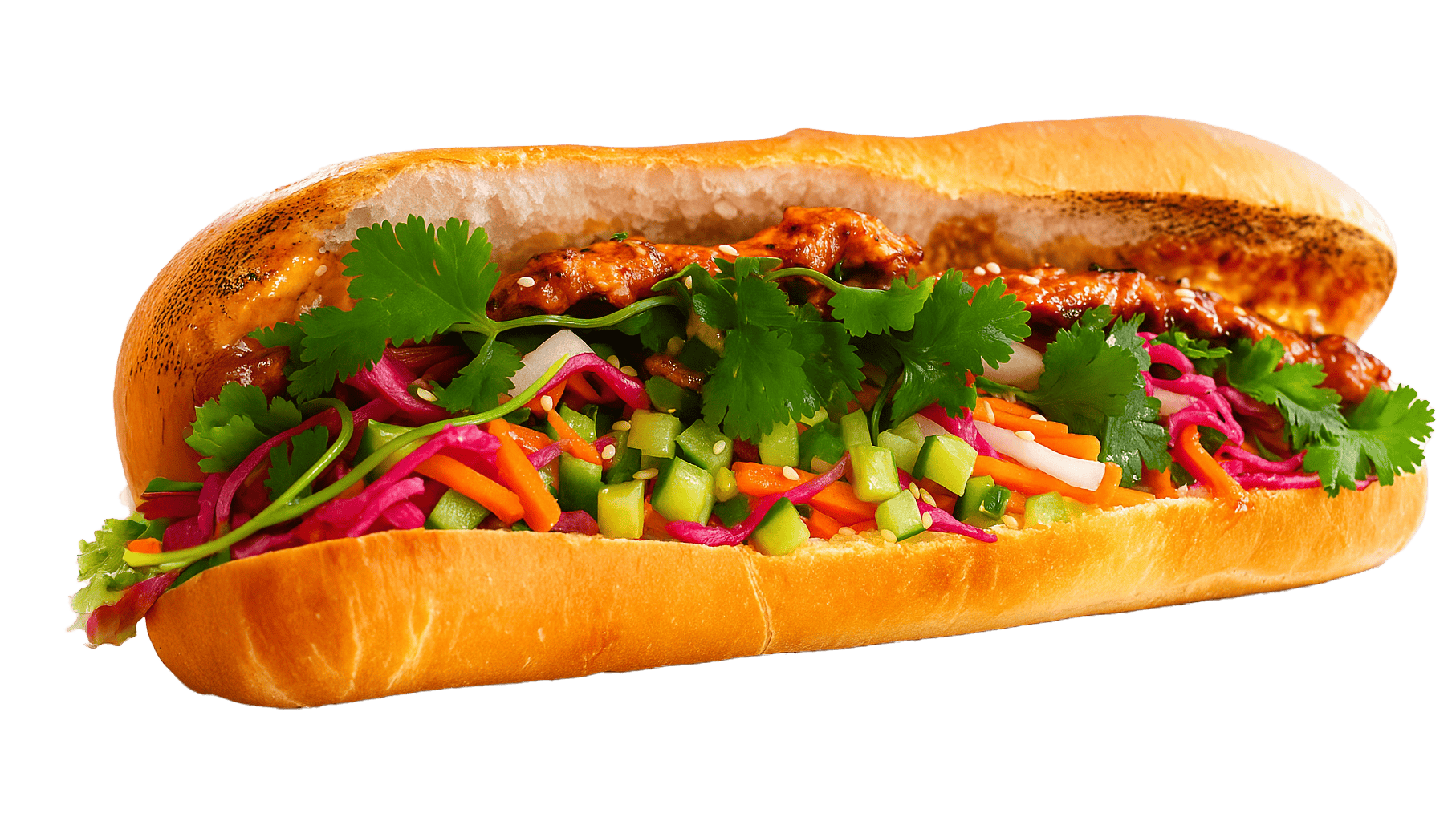 Croquant à l’extérieur, moelleux à l’intérieur—nos Banh Mi sont garnis d’ingrédients frais, de protéines grillées et de sauces signature chaudes, le tout dans une baguette française pour une bouchée parfaite à chaque fois !